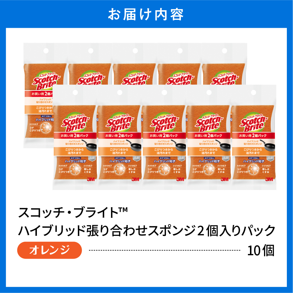 ・スコッチ・ブライト? ハイブリッド貼り合わせスポンジ2個入りパック×10個 (オレンジ)