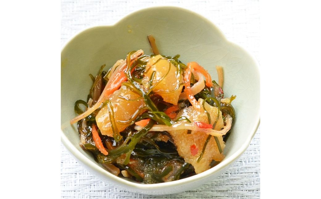 自慢の特製漬込みタレとするめいか、昆布、人参を合わせ、昆布のうま味が染み出しトロトロになるまでじっくり熟成させました。