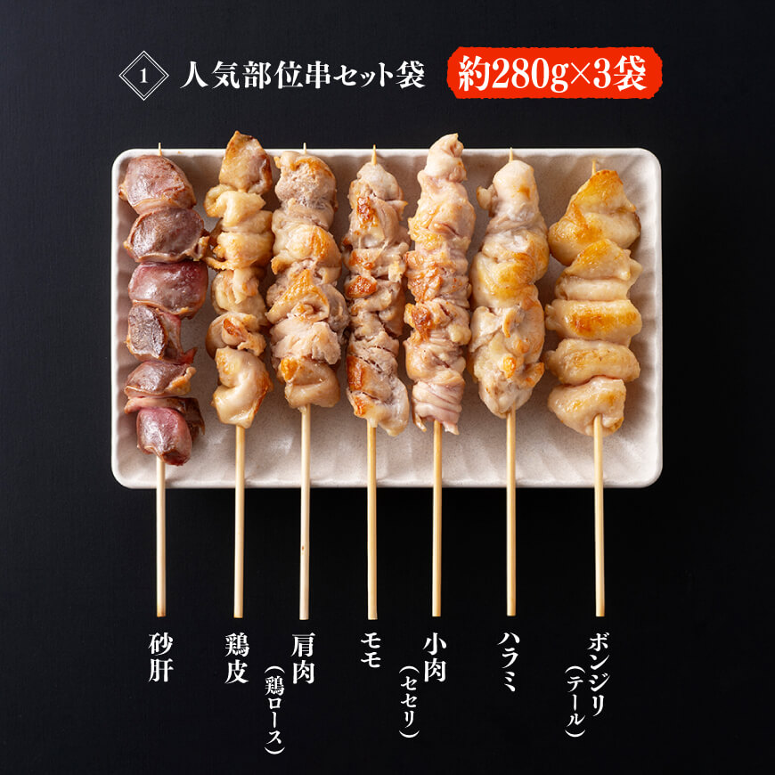 ①人気部位串・・・1袋(約280g)7本入り×3袋