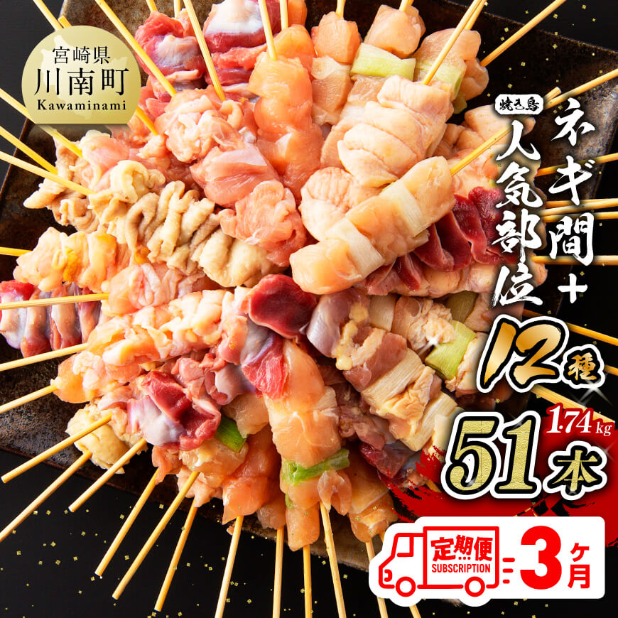 定期便 ふるさと納税 焼き鳥 焼鳥 やきとり 肉 鶏肉 国産 九州産 宮崎県産 ねぎ間 惣菜 BBQ 小分け うち居酒屋 うちごはん 川南町 宮崎県川南町 川南町 D07805t3