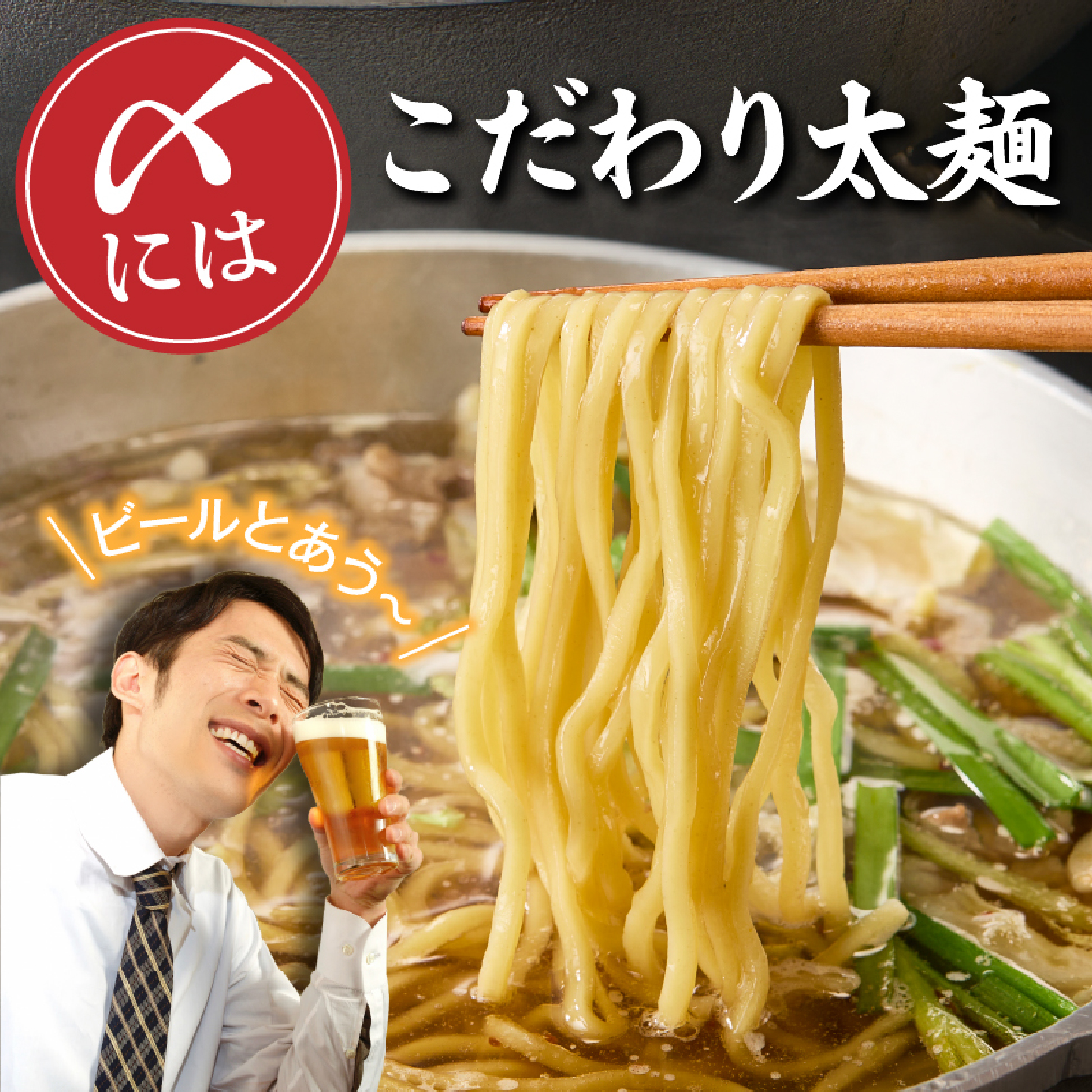 ④〆はセットの麺を、別鍋にて沸騰したお湯で2分間茹でます。その後ざる切りした麺をもつ鍋に入れて、お好みの硬さに調整しお召し上がりください。