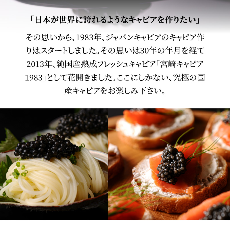 ぜひ、ジャパンキャビアが世界に誇る「宮崎キャビア1983」をご堪能ください。