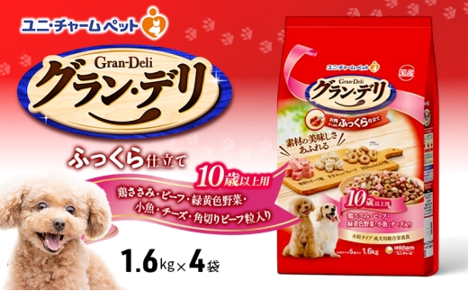 グラン・デリ ふっくら仕立て 10歳以上用 鶏ささみ・ビーフ・緑黄色野菜・小魚・チーズ・角切りビーフ粒入り 1.6kg×4袋 ペットフード ドッグフード 犬のごはん 犬用フード 犬 ペット ソフト ユニ・チャーム ペット ユニ・ケアー [№5275-0459]