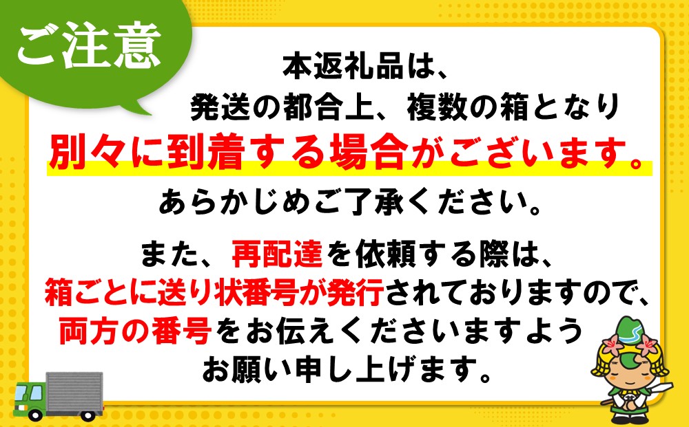 者の都合により返礼品がお届けできない場合に対する再出荷は致しかねますのでご了承ください。