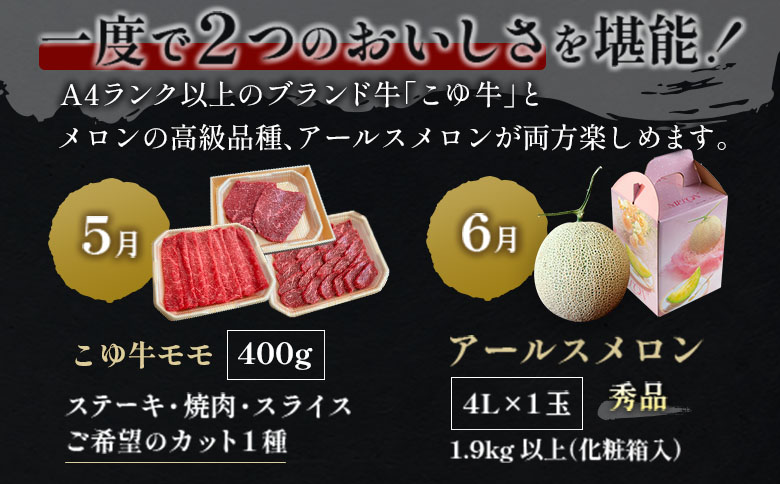牛肉とメロンの異なる種類を2回に分けてお届けいたします。