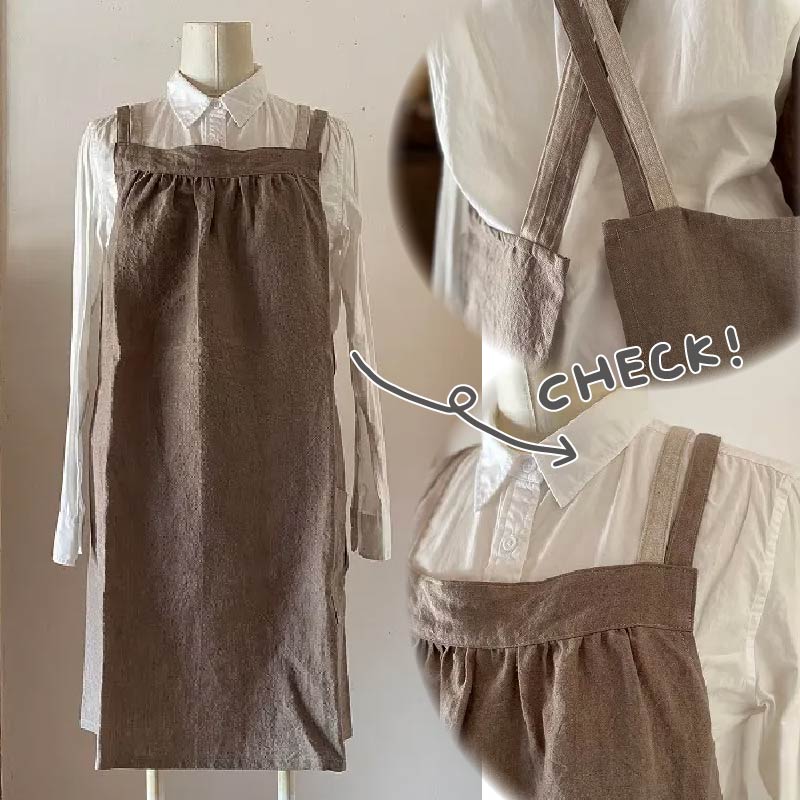 胸元のギャザーが、やわらかく優しい印象のエプロンです。
