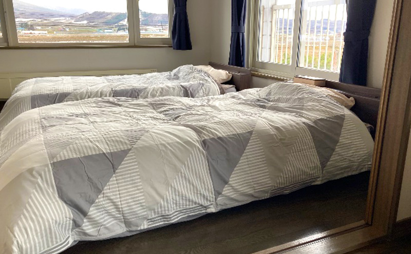 完全貸切の1棟貸切の農家住宅です。2階の部屋から見る富良野盆地の景観は格別です。
