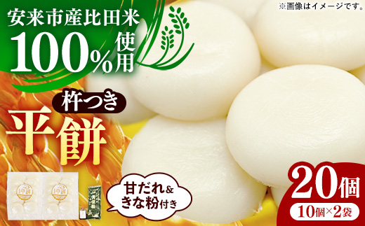 比田米 100% 杵つき 平餅 丸餅 餅 もち こだわり コシ なめらか おやつ おもてなし 贈り物 20個 甘だれ きな粉付き おいしい 美味しい お取り寄せ 送料無料 島根県 安来市