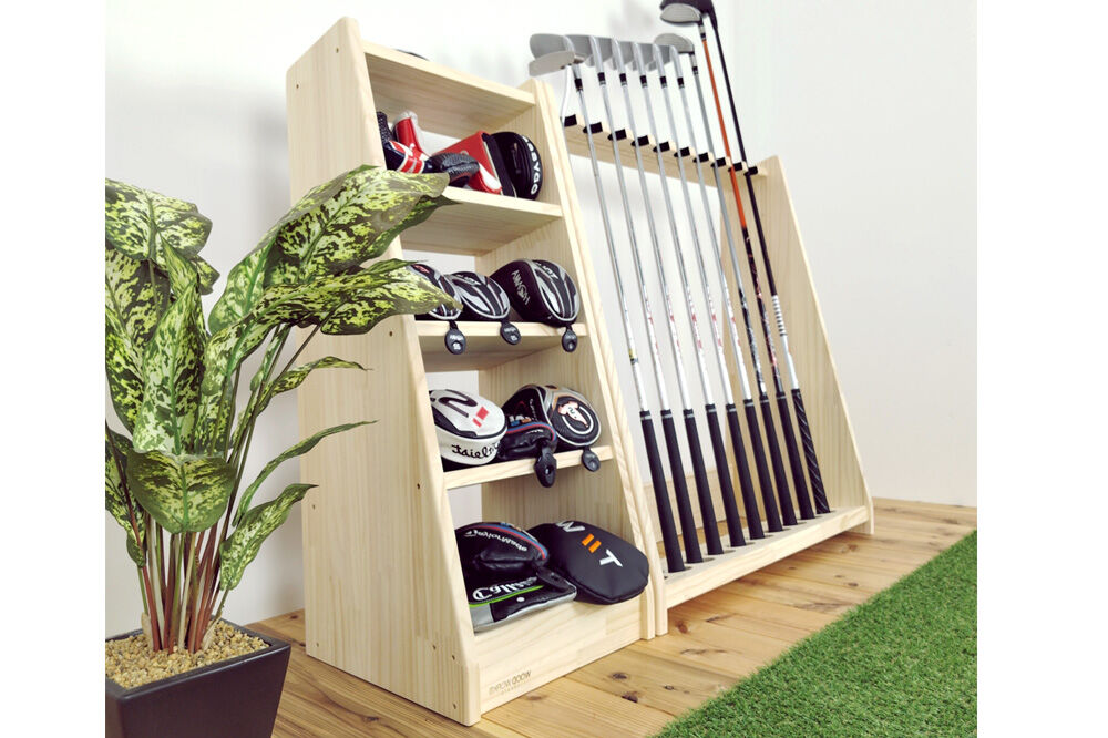 かさばるヘッドカバーや周辺アイテムを魅せる収納としてディスプレイできます。専用のラックがあると試打する時やメンテナス時にヘッドカバーの置き場所に困りません。また、ボールやティー、マーカー、計測器など様々なアイテムを収納することができます。