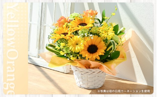 定期便 ≪6ヶ月連続お届け≫ 選べるカラー 季節のフラワーアレンジメント M (イエロー・オレンジ)【お花 フラワー アレジメント 花束 ギフト 生花 プレゼント 花束 花 記念日 敬老の日 お祝い】 [G-20701_02]