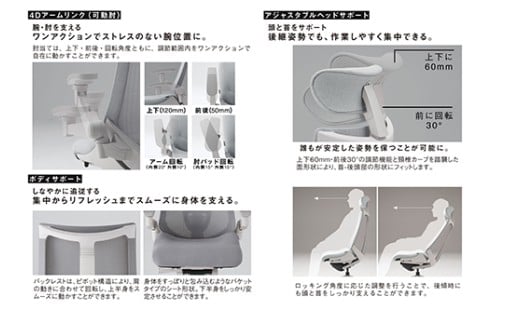 S字カーブを描く理想的な姿勢をサポートし、腰の負担を軽減。パットの位置は体格に合わせて60mm・7段階で調節可能。