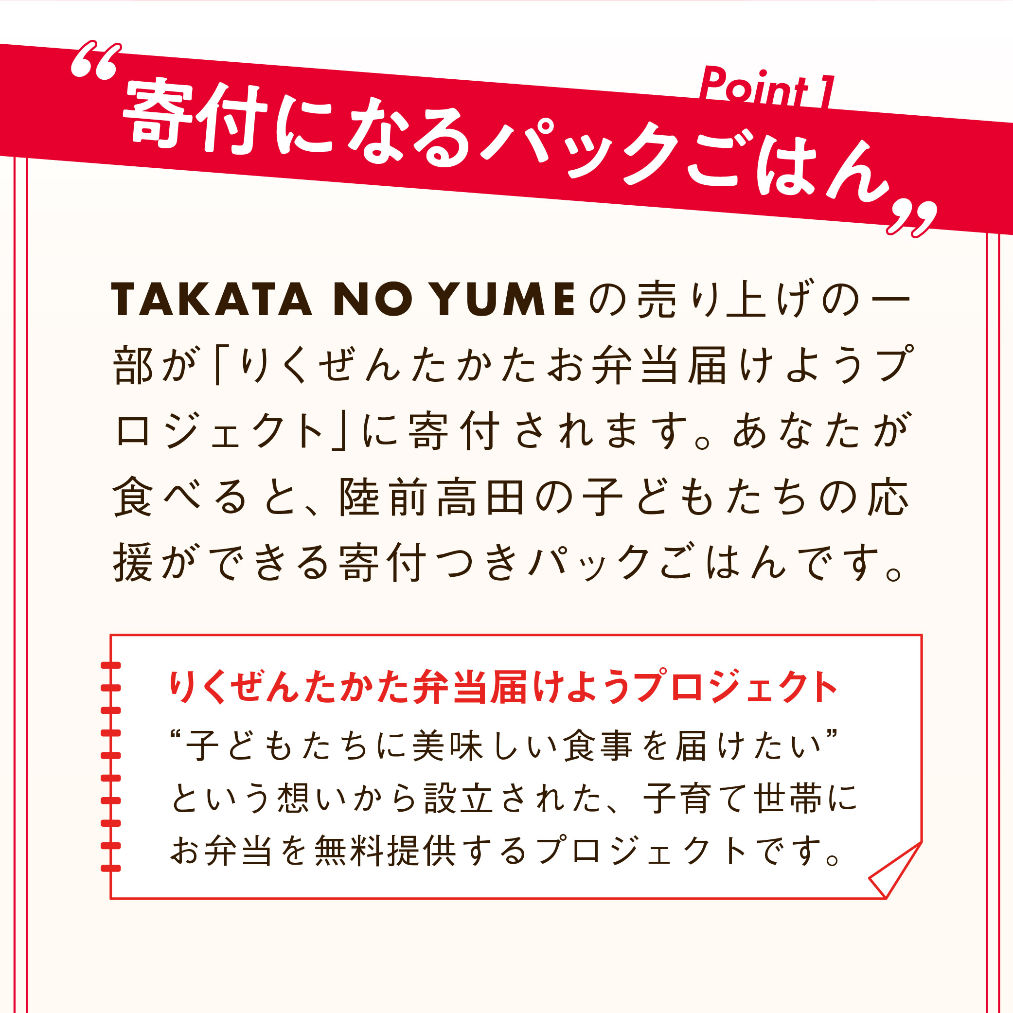 【このパックライスをご購入頂くと代金の一部が『りくぜんたかたお弁当届けようプロジェクト』に寄附されます。】