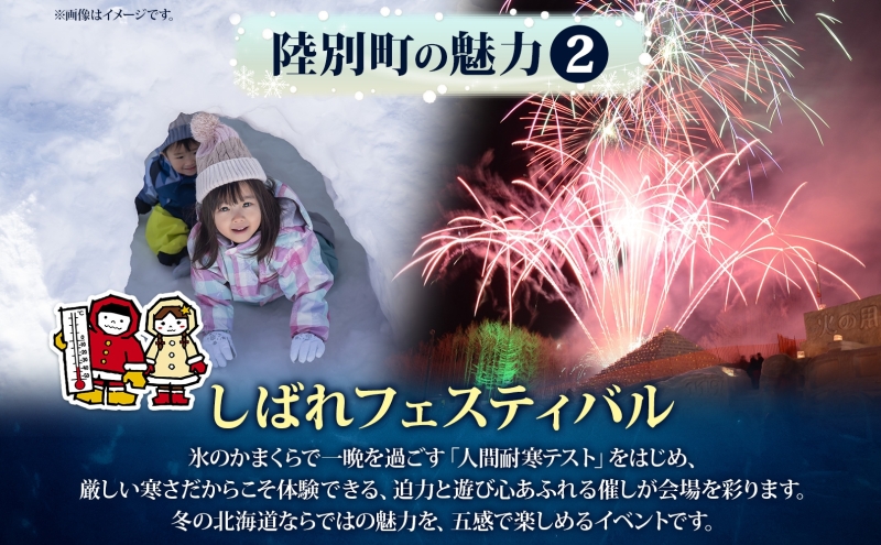 陸別町は北海道の内陸部に位置し、周辺が小高い山に囲まれているため、冬期間には厳しい寒さになります。冬期間の晴天率が高い陸別町は、早朝には放射冷却 現象により気温がぐんと下がり、マイナス30度を下回る事もあります。珍しいと言われるダイヤモンドダストも何気ない日常の中にあります。寒さというネガティブな条件をまちづくりに活かすために、40年以上前から「しばれフェスティバル」を開催して全国に発信しています。「しばれ」とは、北海道の言葉で寒いという意味をもち、気温が下がった朝には「今朝はしばれたねー」と挨拶を交わします。「しばれフェスティバル」のキャラクターであり、陸 別町のカントリーサインのモデルになっている「しばれ君」「つららちゃん」はまちの広報として活躍しています。
