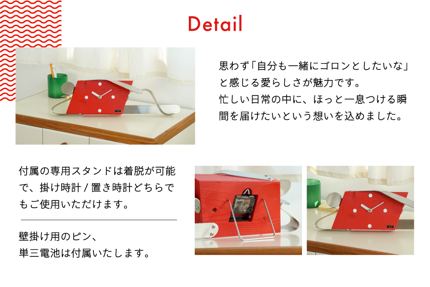 付属の専用スタンドは着脱が可能で、掛け時計/置き時計どちらでもご使用いただけます。