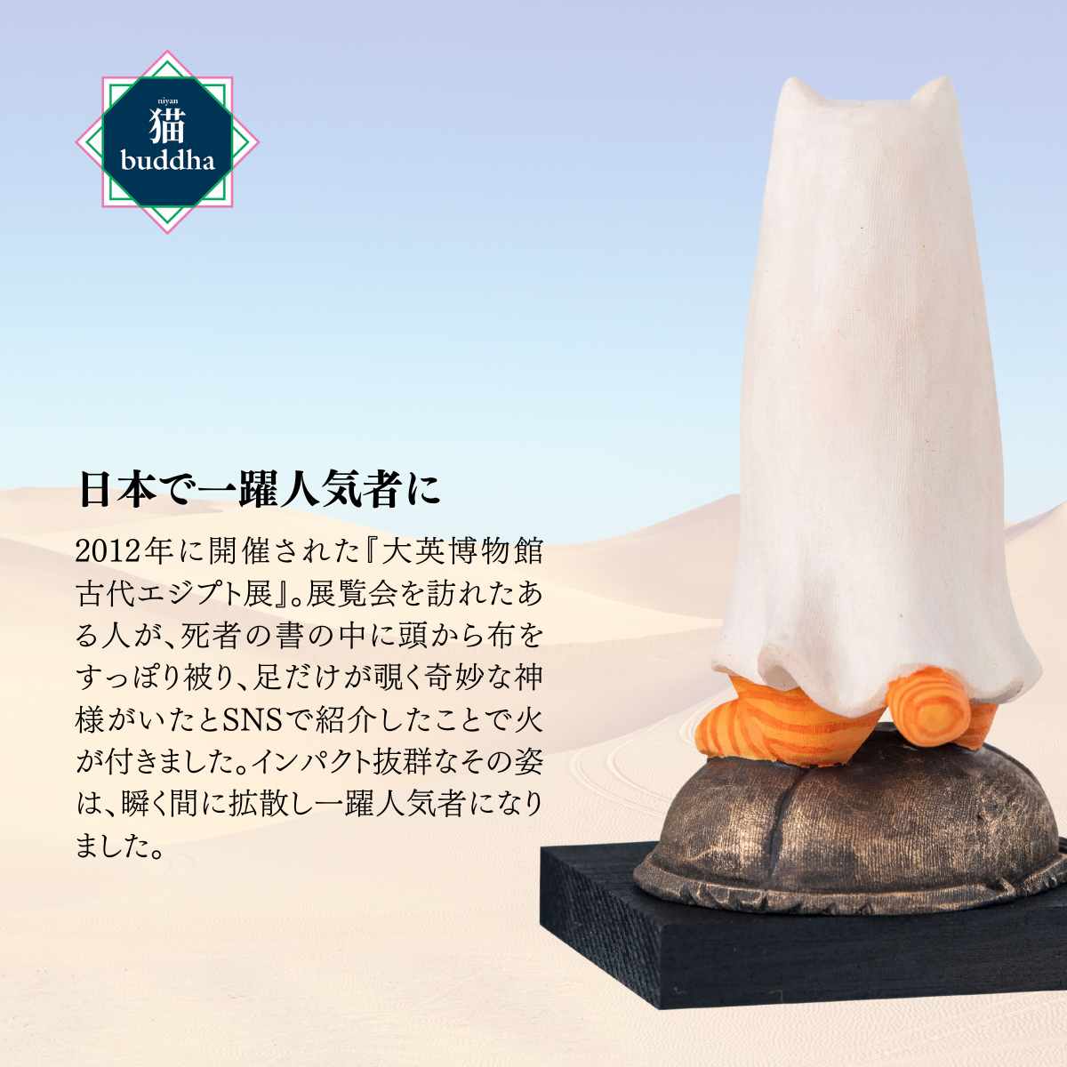 更に猫buddhaメジェド神は、それ以外にも様々な幸運のいわれが満載。あなたとご家族の幸せの守り神として是非お招きください。