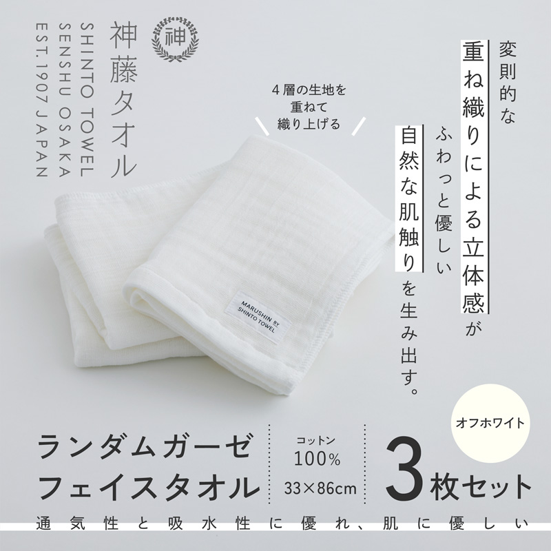 ランダムな厚みと膨らみによって、たっぷりと空気を含み、速乾性と吸水性に優れ、軽く肌に優しい自然な触感を楽しむことができます。