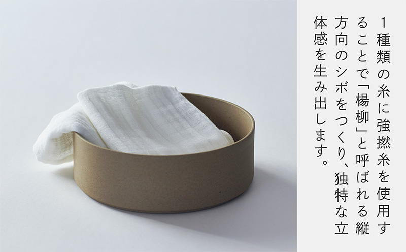 また、1種類の糸に強撚糸を使用することで「楊柳」と呼ばれる縦方向のシボをつくり、独特な立体感を生み出します。