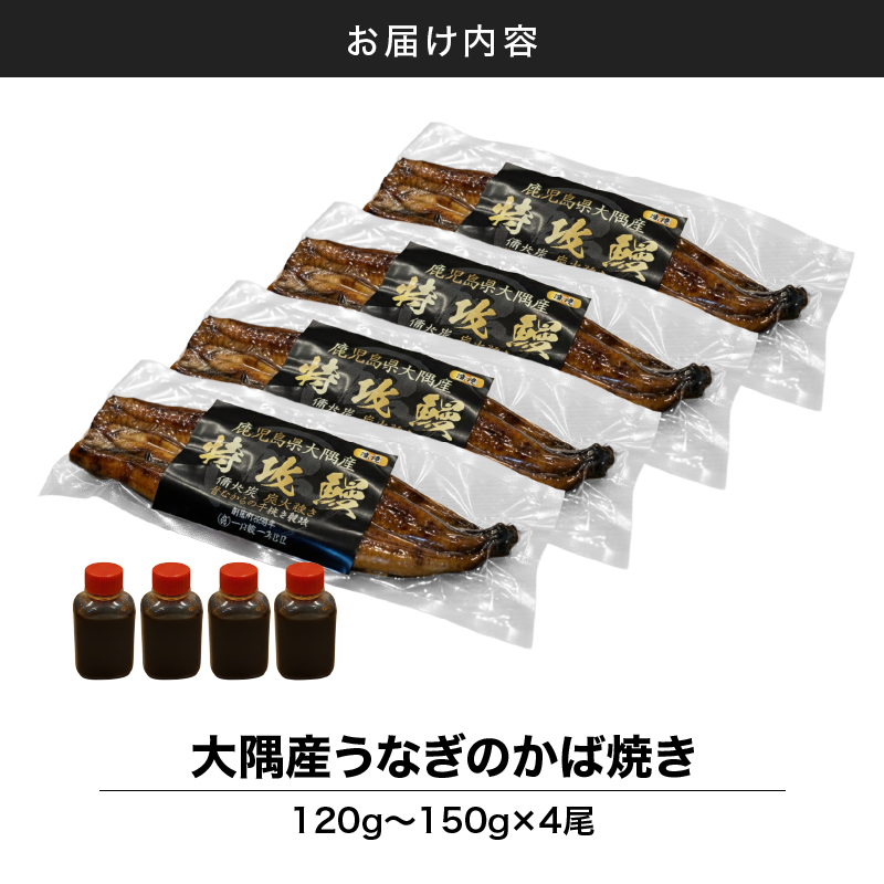 大隅産うなぎのかば焼き(120g〜150g)×4尾