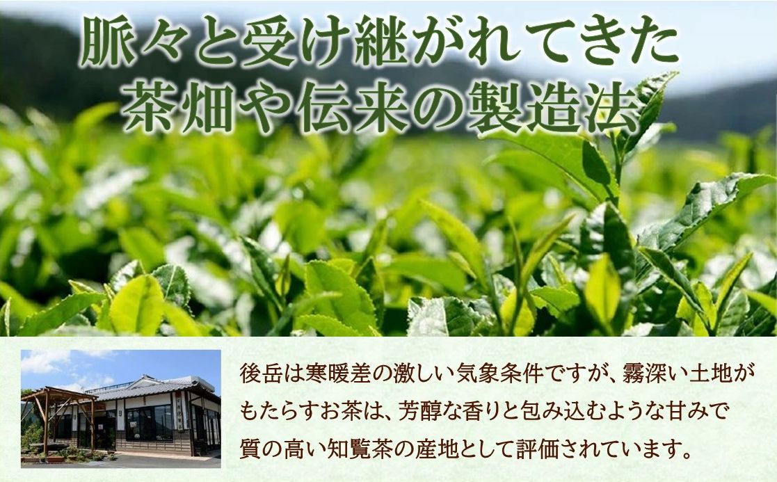 後岳は寒暖差の激しい気象条件ですが、霧深い土地がもたらすお茶は、芳醇な香りと包み込むような甘みで