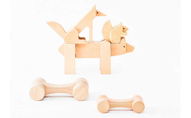 北海道に生息する動物をモチーフにしたアニマルパズル3種と木の温もりあふれる車のセットです。