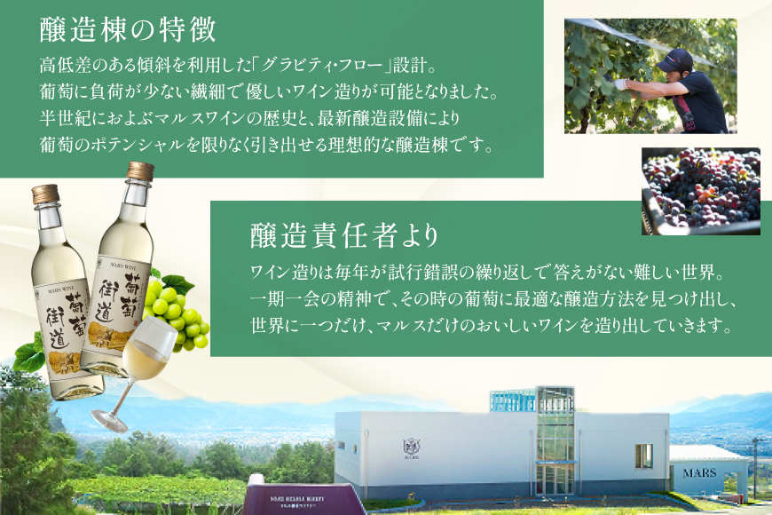 半世紀におよぶマルスワインの歴史と、最新の醸造設備による技術が組み合わさった、葡萄のポテンシャルを限りなく引き出せる理想的な醸造棟です。