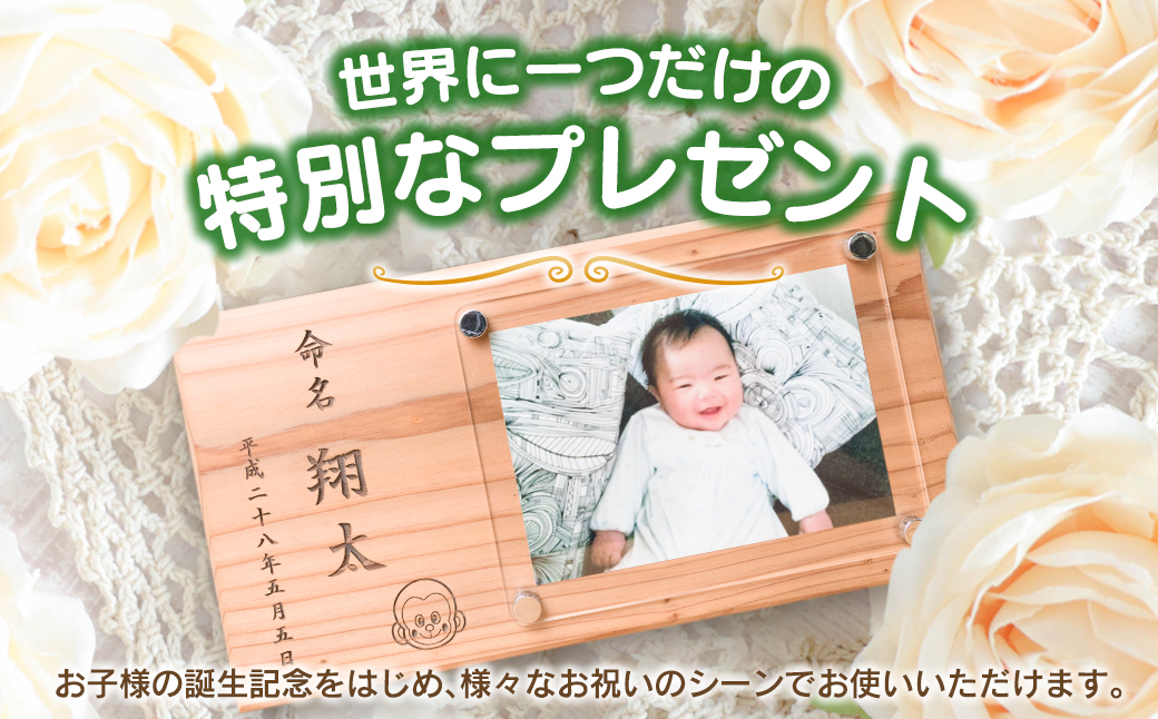 日南特産の飫肥杉を使用した「置き型『命名額』」を返礼品としてご用意いたしました。