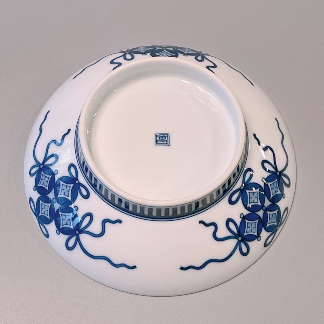 染付と赤絵付けの絶妙な色とバランスが際立つ作品です。