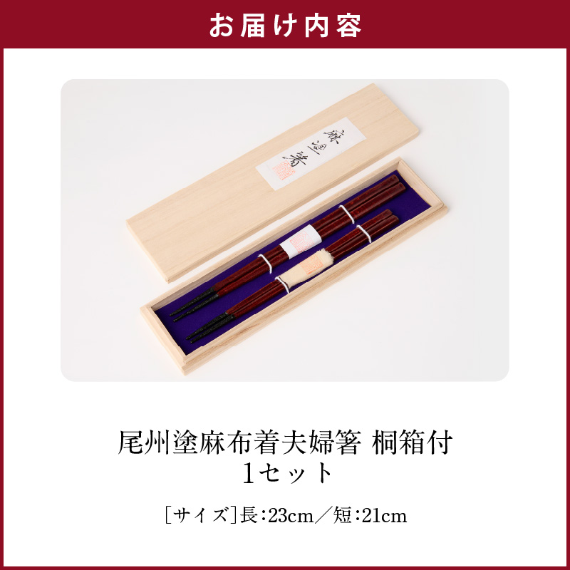 尾州塗麻布着夫婦箸 桐箱付 1セット(尾州塗麻布着夫婦箸 2膳)