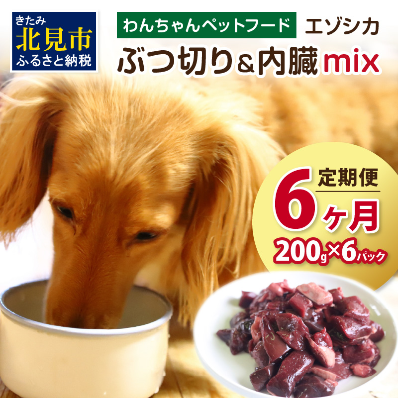 1ヶ月に一度エゾシカ肉ぶつ切り&内臓mix 200g×6パックをお届け。