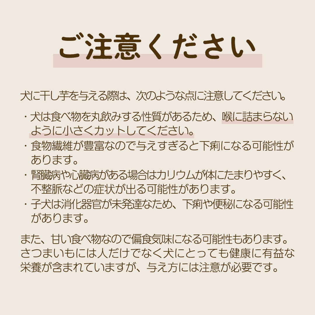 犬に干し芋を与える際は、次のような点に注意しましょう。