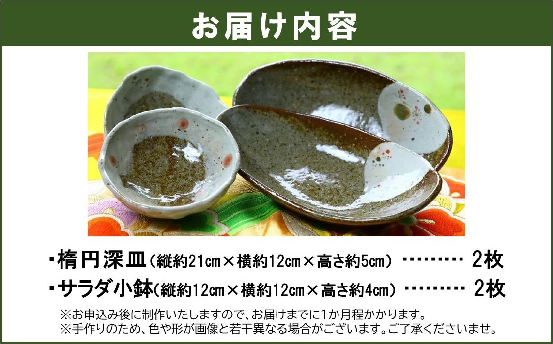 陶器 楕円深皿2枚(縦約21cm×横約12cm×高さ約5cm)