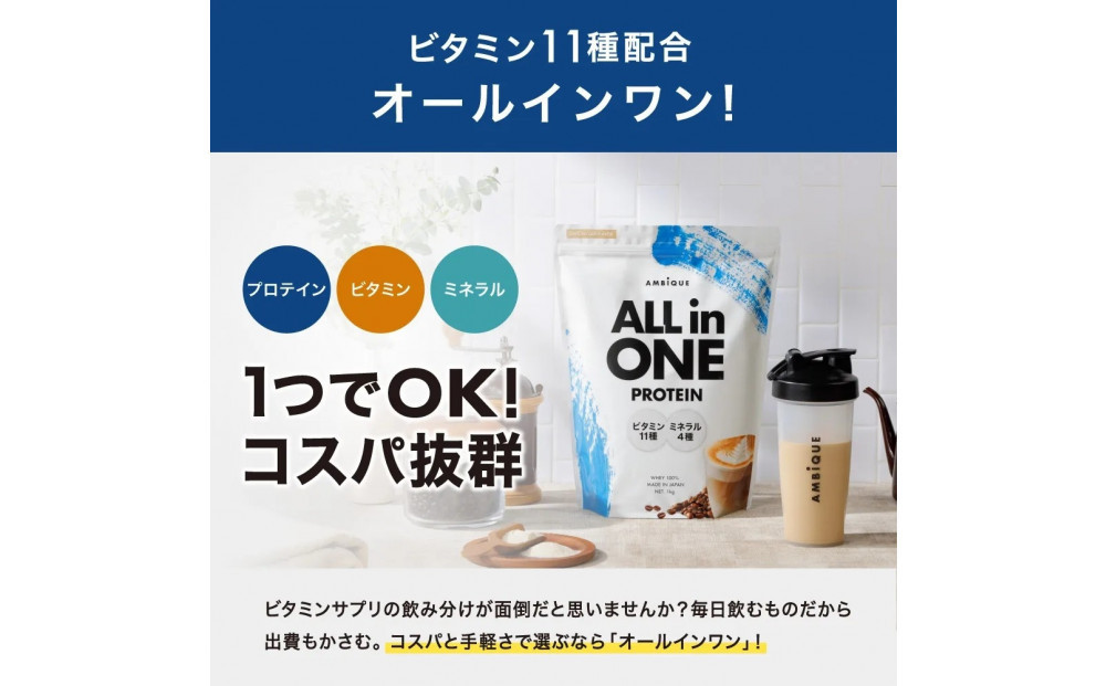 ビタミン11種配合 オールインワンプロテイン ビタミンサプリの飲み分けが不要。