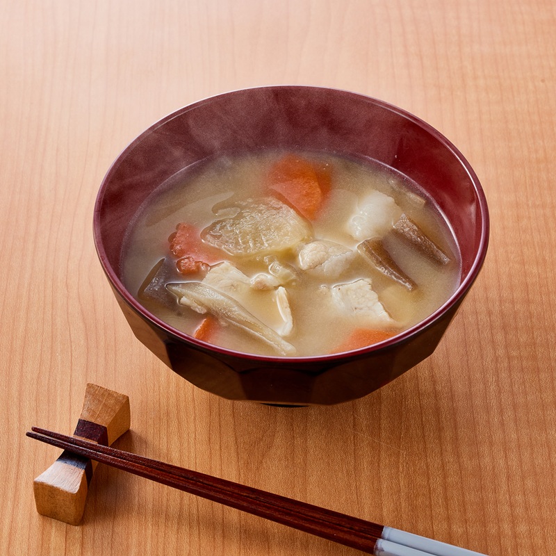 【原材料】かつお節だし、大根(中国産)、豚肉、にんじん、こんにゃく、ごぼう、みそ/酒精、(一部に豚肉・大豆含む)