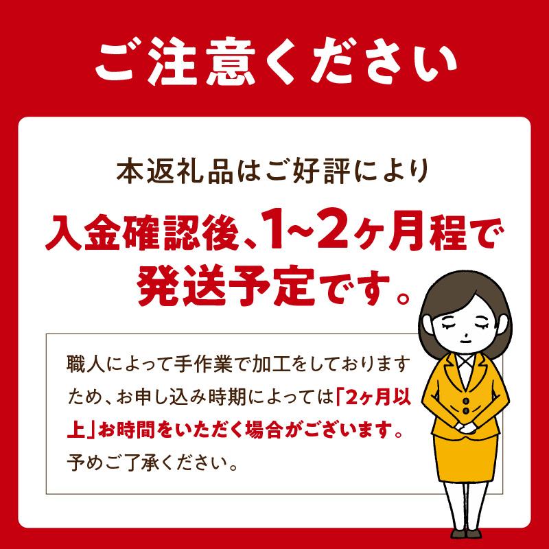 ※職人によって手作業で加工をしておりますので、お申し込み時期によっては2ヶ月以上お時間をいただく場合がございます。予めご了承ください。 - 内容量
