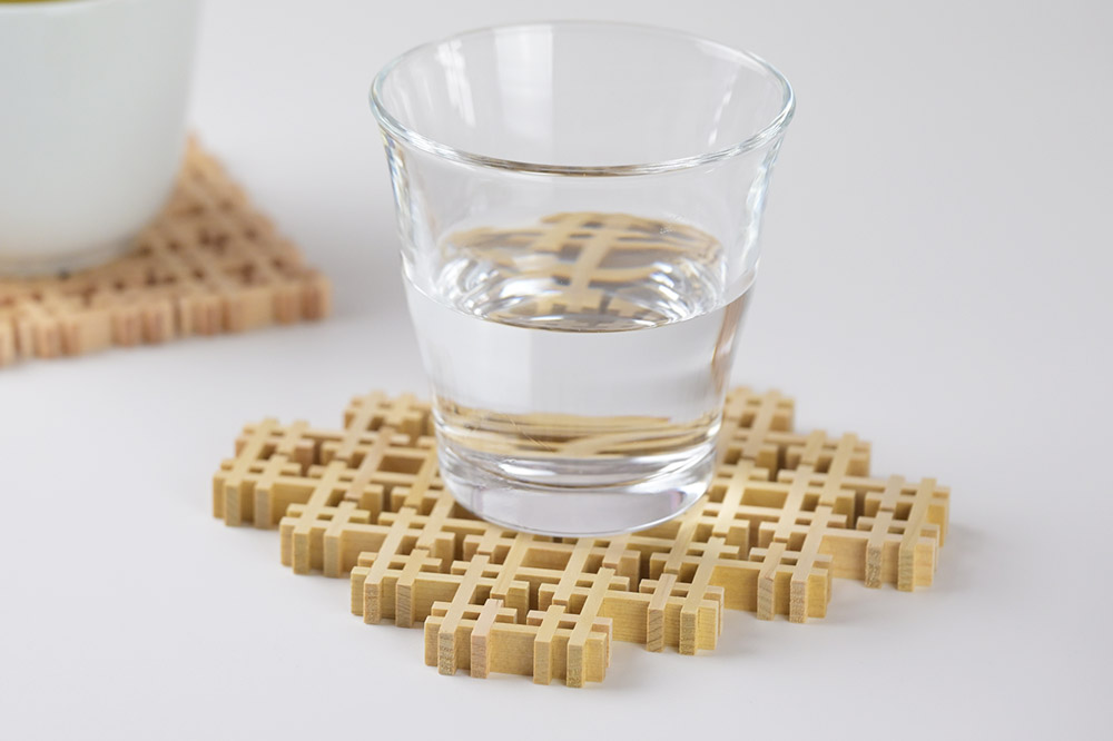 出来上がった組子細工は、オリジナルコースターとしてご使用できます。
