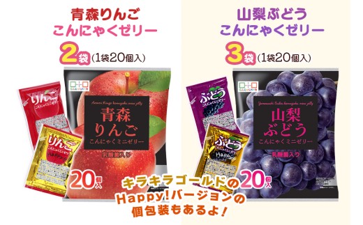 こんにゃくパーク「お得用こんにゃくミニゼリー」詰め合わせ (4種) 20個入×9袋|青森りんご味 福島もも味 長野シャインマスカット味 山梨ぶどう味 リンゴ 林檎 りんご シャインマスカット 桃 ぶどう 葡萄 乳酸菌 スイーツ デザート おやつ フルーツゼリー 個包装 アソート まとめ買い ヨコオデイリーフーズ [0243]