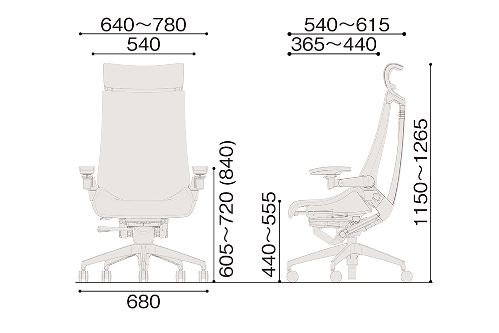 【サイズ】W640~780(脚:680mm)×D540~615×H1150~1265mm(SH:440~555)