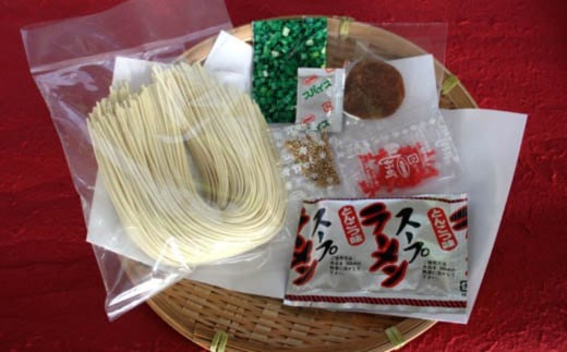 麺、スープ、焼き豚、ネギ、ゴマ、紅しょうが、コショウが入っていますので自宅にいながらお店で食べるようなラーメンができます。