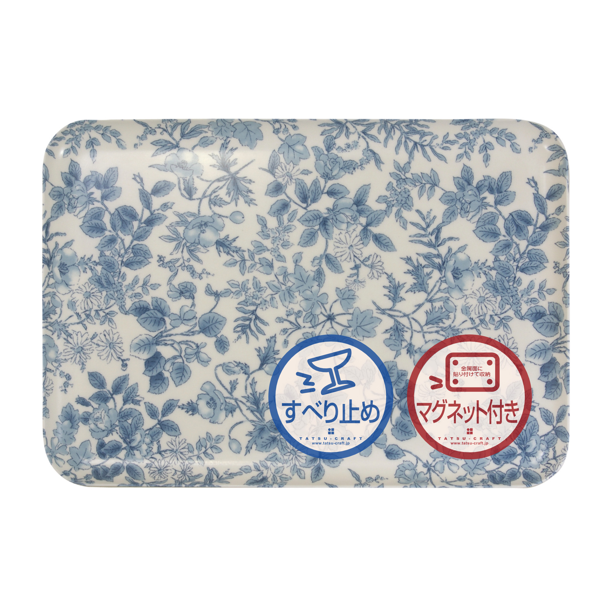 そんなときは、繊細な青い花々の「レスト」トレーが頼れる相棒。白い食器が映えて、いつものテーブルがすっと整います。