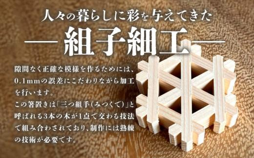 香川県産のヒノキを使い、香川の伝統工芸「組手(くで)障子」の技法で制作した組子細工の箸置きです。