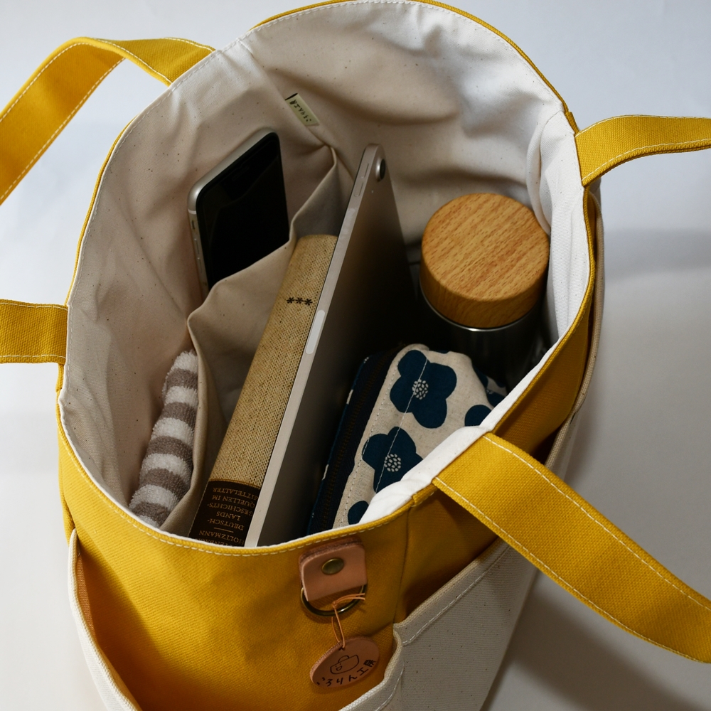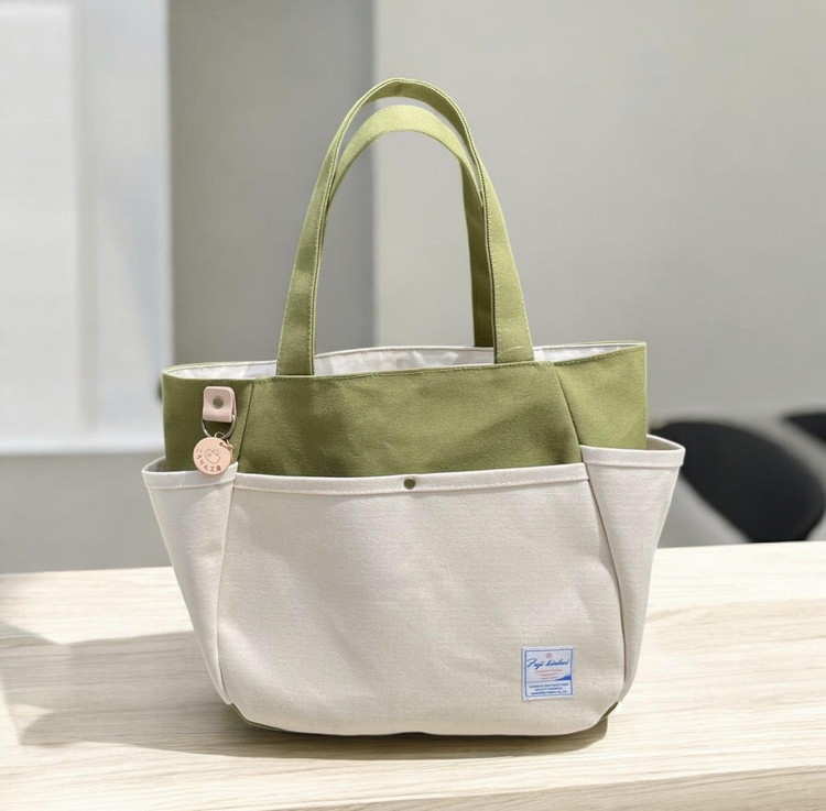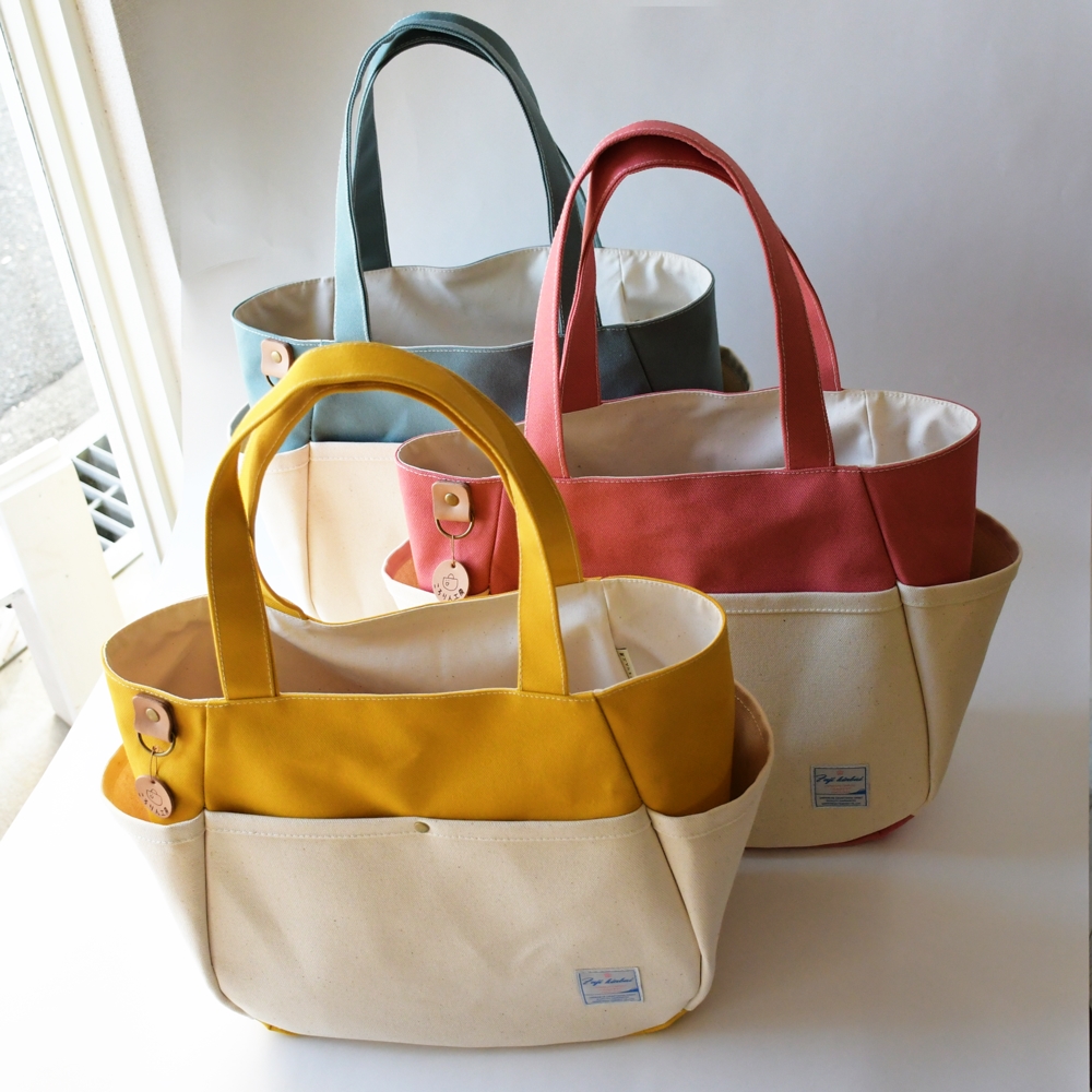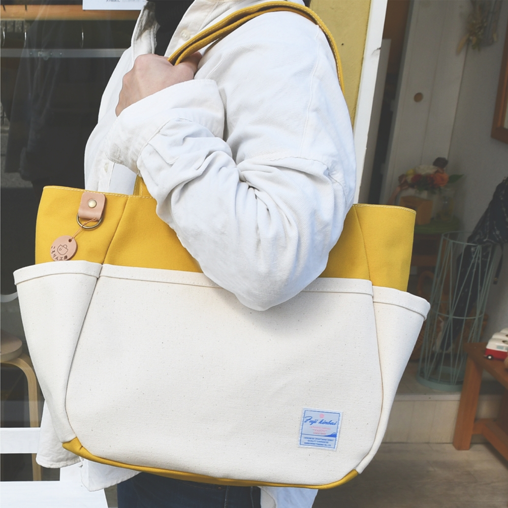 ころりんバッグシリーズは、川島商事株式会社さんの帆布「富士金梅(R)」を用いており、丈夫で長持ちするので、長くご愛用いただけます。