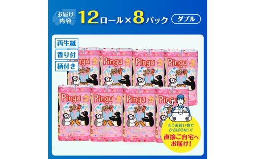 ピングー トイレットペーパー ダブル 96ロール キャラクターロール 香り付 可愛い 日用品 生活用品 消耗品 ギフト トイレ トイレトレーニング 防災 備蓄 柄付き 再生紙 イズミコーポレーション 富士市 [sf002-163]