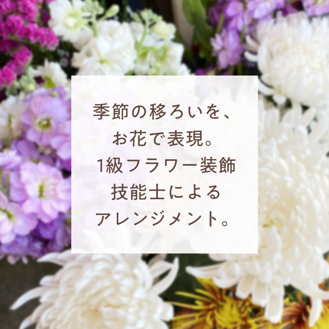 その季節に合わせたお花を使用して一つ一つ丁寧に製作致します。