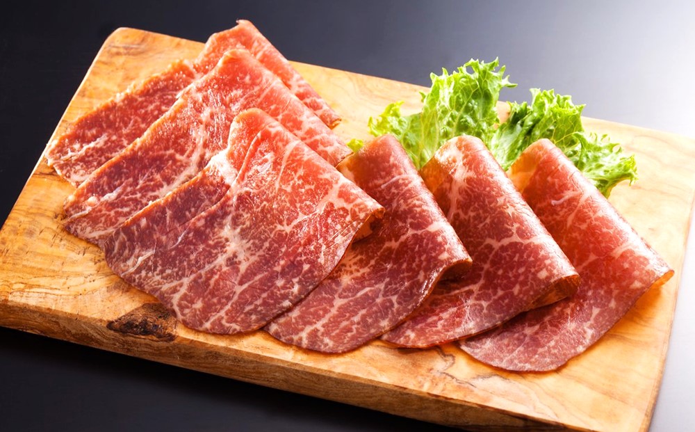 赤身の生ハムは、まろやかで、もちもちとした食感です。味に深みがあり、ほのかに燻製の薫りが口の中に広がる贅沢な逸品です。