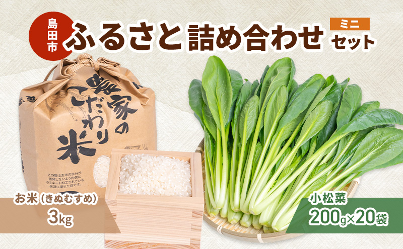 小松菜200g×20袋、お米(きぬむすめ) 3kg