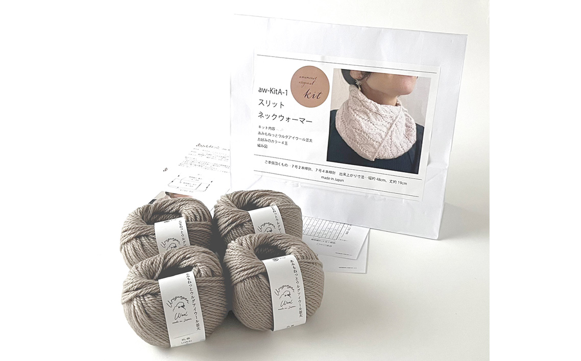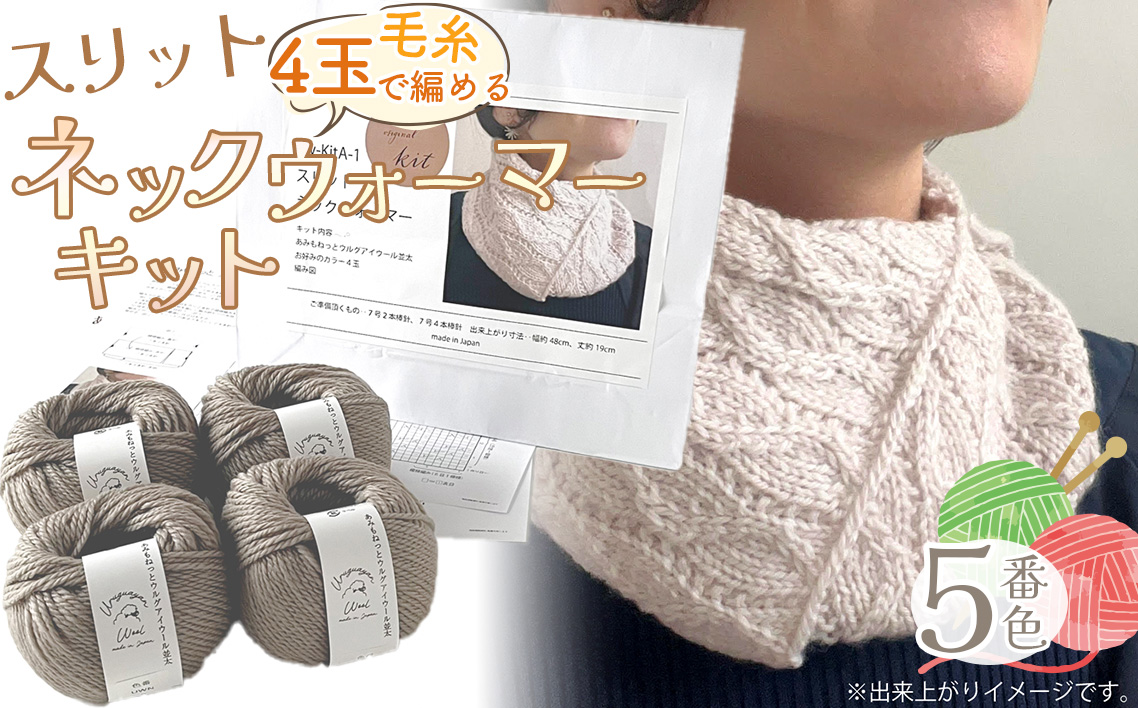 #検索キーワード : 編み物キット ネックウォーマー 手編み 毛糸 ウール100% 並太毛糸 スリットデザイン 冬小物 首元アイテム ハンドメイド 趣味 手作り 編み図付き 愛知県