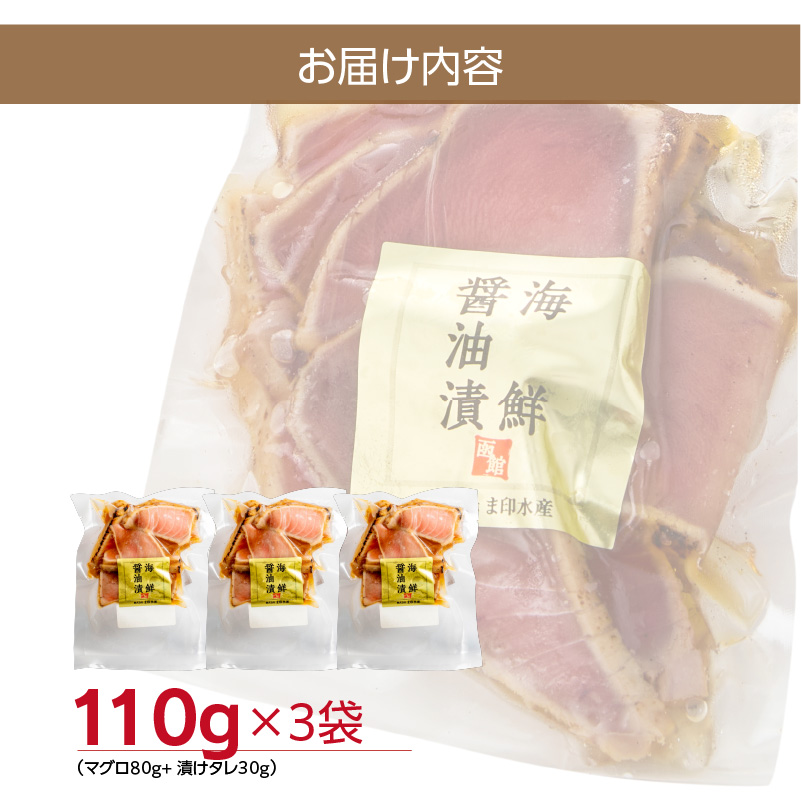 ふるさと納税 北海道産 本まぐろたたき 海鮮醤油漬 110g 3袋 マグロ 醤油漬け 炙り たたき 特製 醤油ダレ つまみ 丼 漬け丼 酒の肴 夜ご飯 小分け パック 海産物 海鮮 お取り寄せ お取り寄せグルメ 北海道 函館市 送料無料
