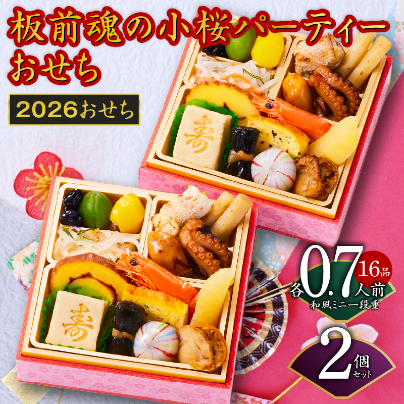 仕様:ミニ一段重 4.8寸、品目:16品目、人数:0.7人前×2個