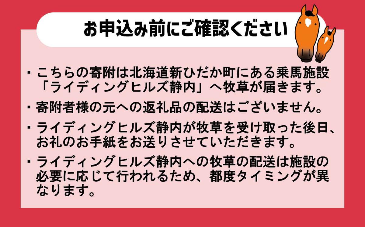 ※返礼品の牧草ロールはライディングヒルズ静内へ送られます。