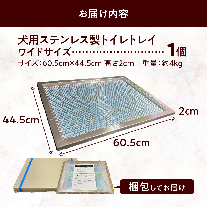 トイレトレイ 犬用 ステンレス製 段付きタイプ ワイドサイズ お手入れ簡単 ペット用品 トイレ用品 衛生的 耐久性抜群 いたずら防止 トイトレ しつけ グッズ 掃除しやすい 愛知県 小牧 送料無料